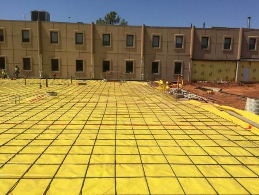Boom pump truckConcrete trucks pouring concreteMRI room poured separately with fiber reinforcementRemote controlled concrete spreader